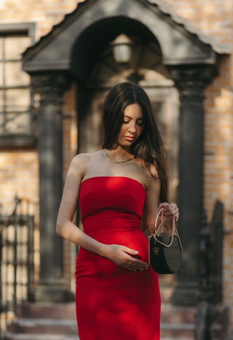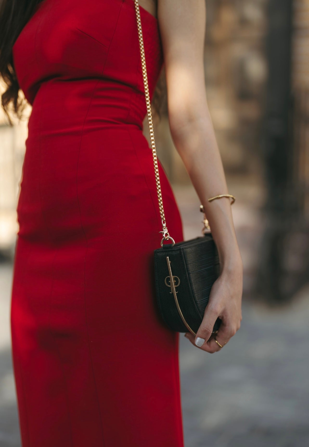 Designed from premium quality, glossy fabric to elevate your presence at any soirée or elegant evening. Its unique 360-degree rotating gold-plated handle allows it to be styled as a structured circle or as a semi-circle clutch, offering versatility and sophistication. It features Dejour’s gold-plated logo delicately placed on the side, adding a subtle signature touch. A removable chain is included, giving you the option to wear it on the shoulder or carry it by hand.