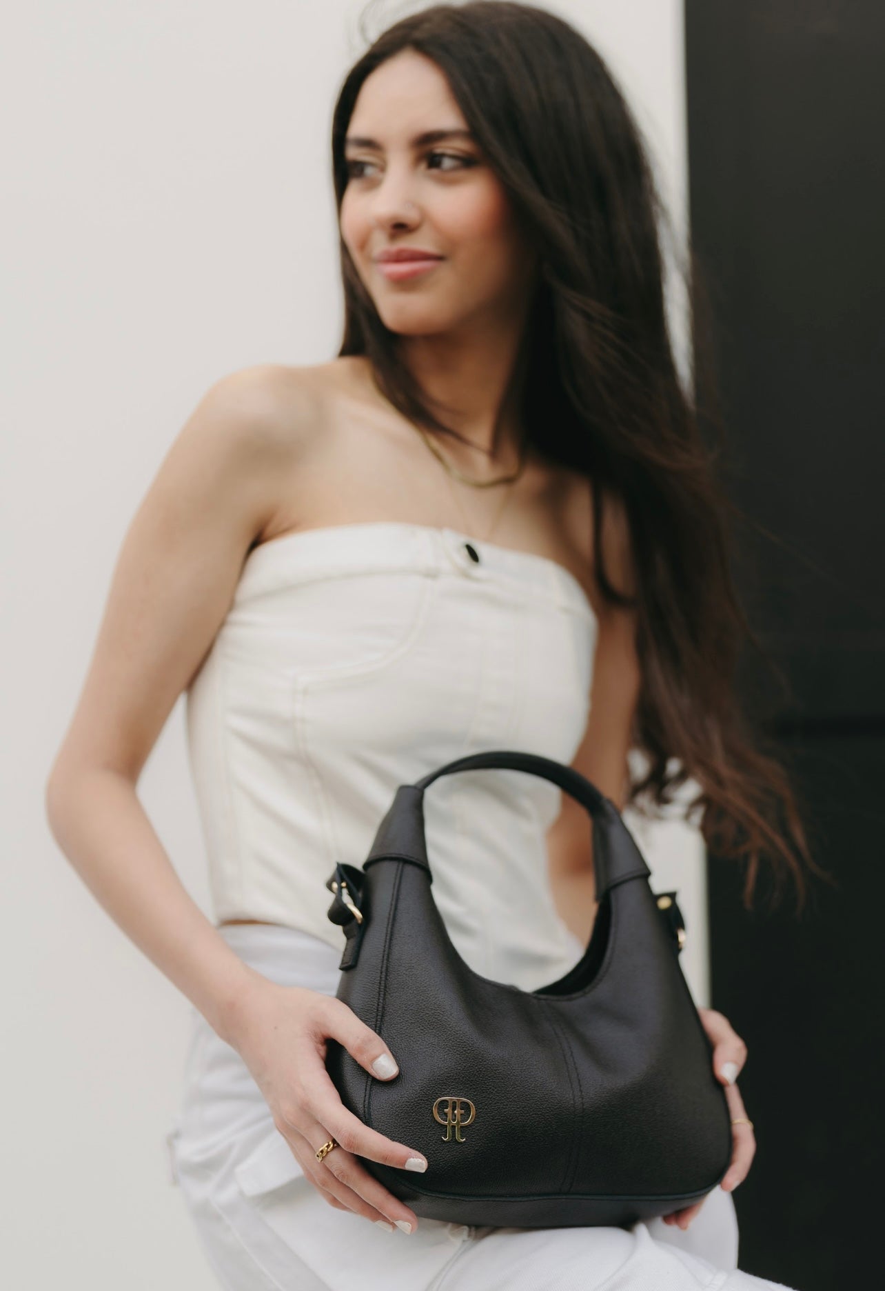 It comes with a detachable strap so you can wear it your way — on the shoulder or handheld. Light, comfy, and always classy… no drama needed.