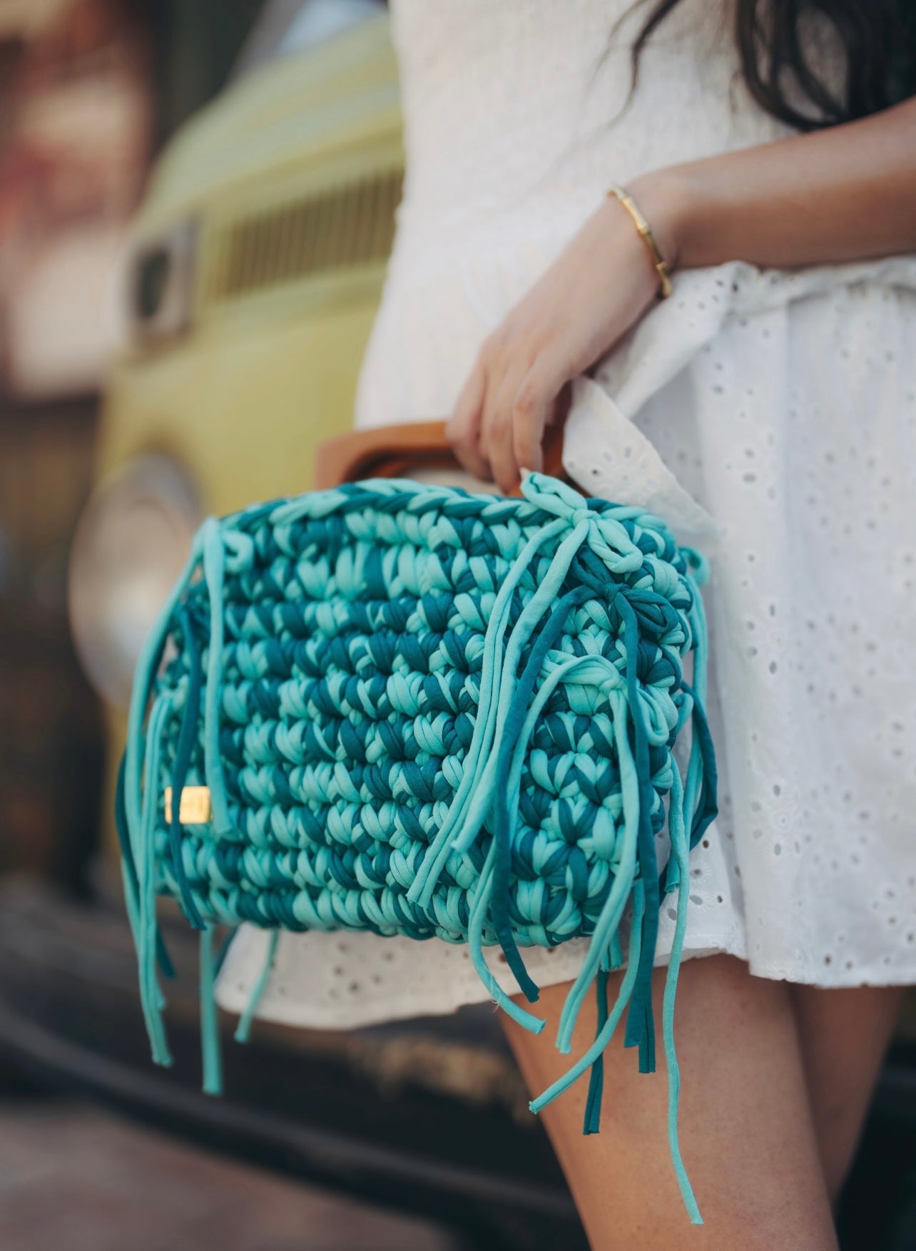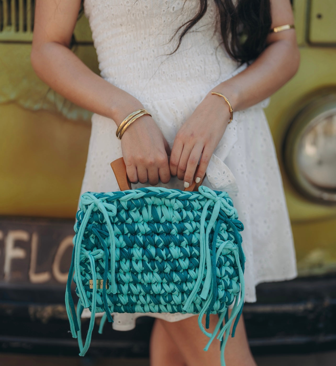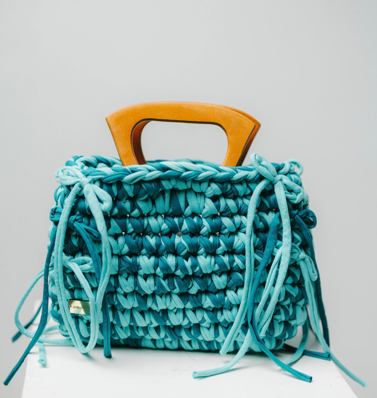 Handmade with love and attention to every detail, Shades of Ocean is where elegance meets effortless charm. It’s crafted from two refreshing tones—blended turquoise shades inspired by the magic of the sea. With delicate ribbons dancing on each side and a wooden handle, this bag is your perfect summer companion. It’s durable, feminine, and irresistibly eye-catching. Trust us—you won’t stop getting compliments.