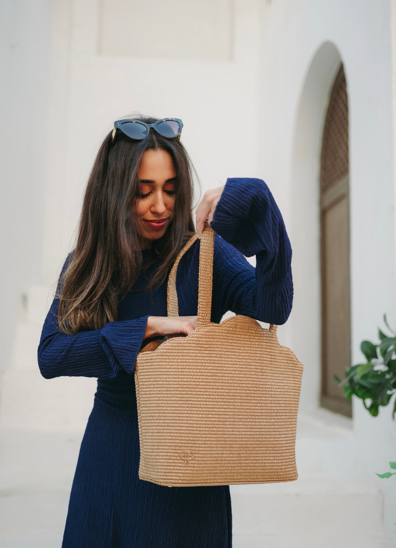 Designed from premium straw-look material, Sadaf takes its shape from the elegance of a seashell — soft, summery, and undeniably chic.